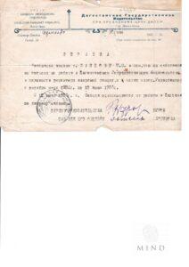 The characteristic of Magomed-Said Saidov. The Private Collection of Rabiyat Saidova (b. 1934)